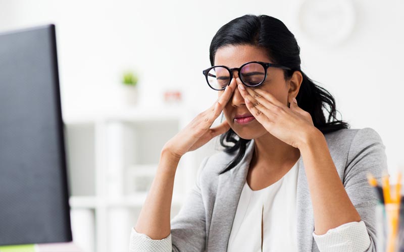 Dry Eyes: Symptoms include scratchy eyes, burning, mild redness and gritty feeling eyes. Oral medications, reading, computer tasks and dry environments may aggravate marginally dry eyes. Dry eyes can be diagnosed by using dyes to observe tear patterns, evaluation of the amount of tears on the front of the eye and from review of your symptoms. Treatment may include artificial tears; eye drops for treating allergies; and/or punctal plugs inserted in the tear drainage canals.